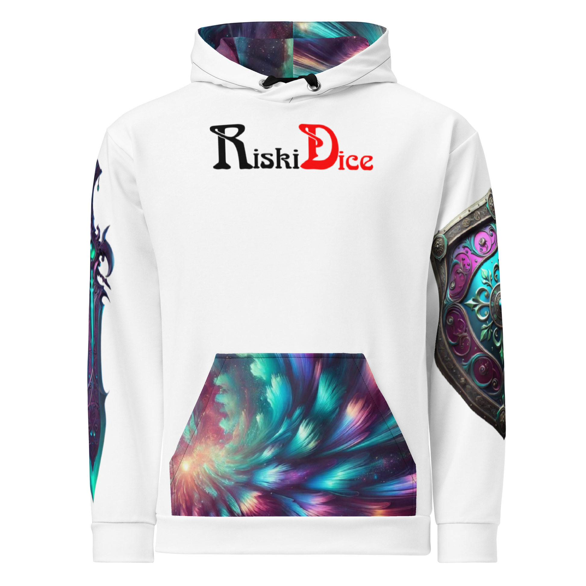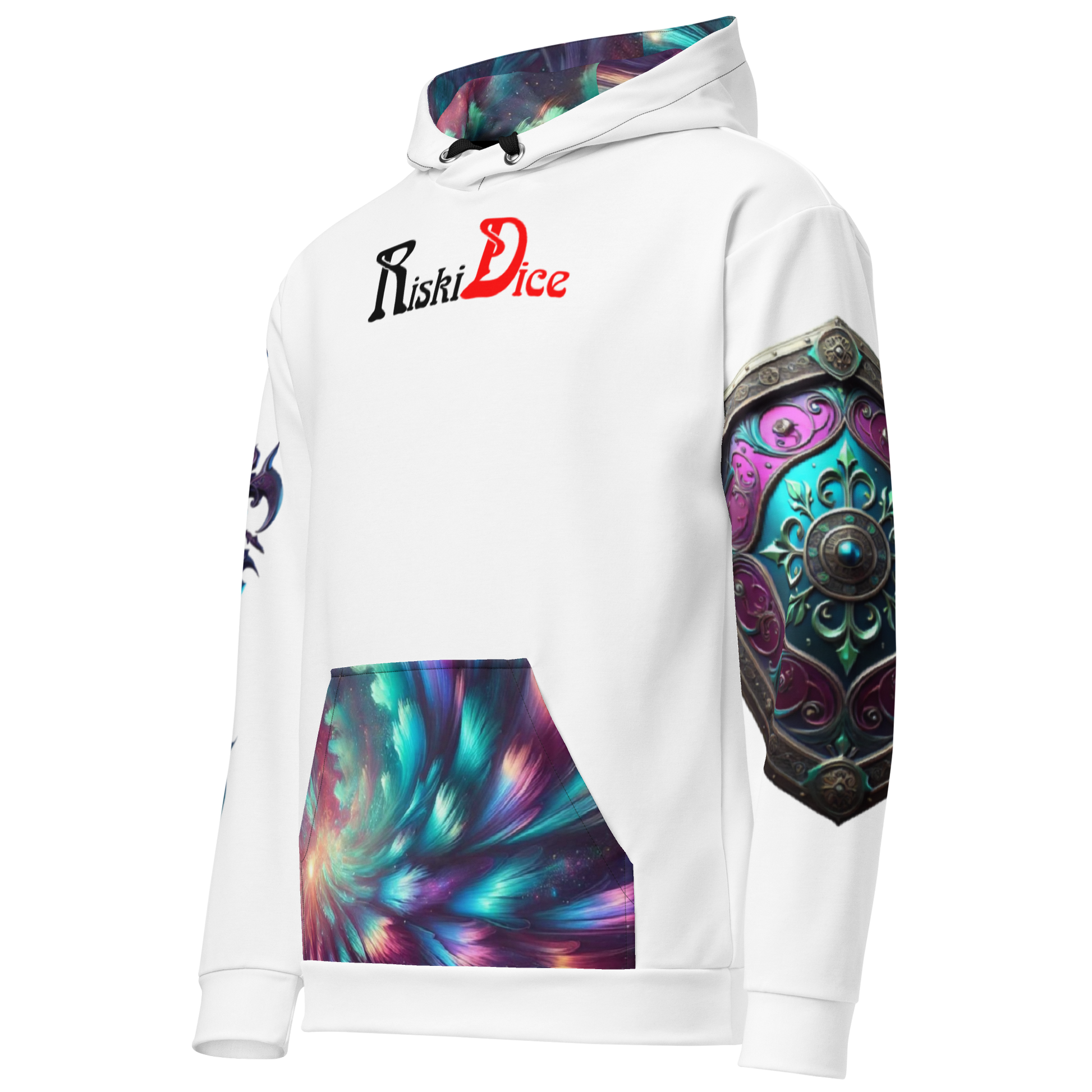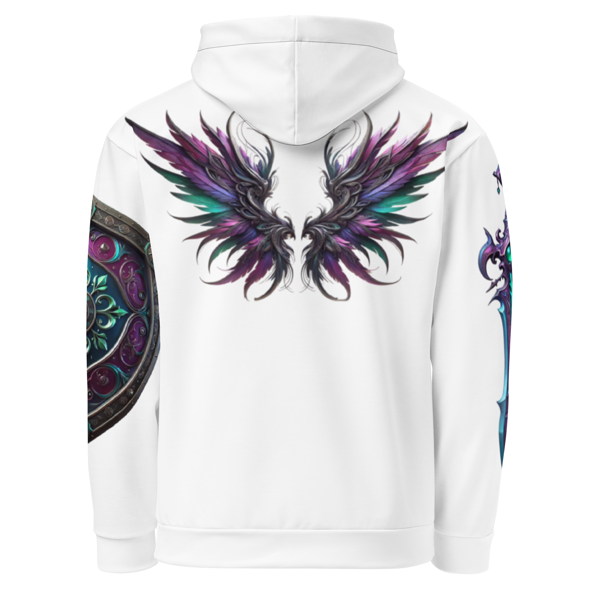 A mesmerizing fusion of magic and mystery, this hoodie shimmers with deep purples, radiant teals, and cosmic hues, evoking the shifting beauty of refracted light. Ethereal patterns weave through the design, mirroring the unseen energies of an enchanted realm. A statement of both wonder and power, it embodies the boundless potential of those who dare to dream beyond reality.