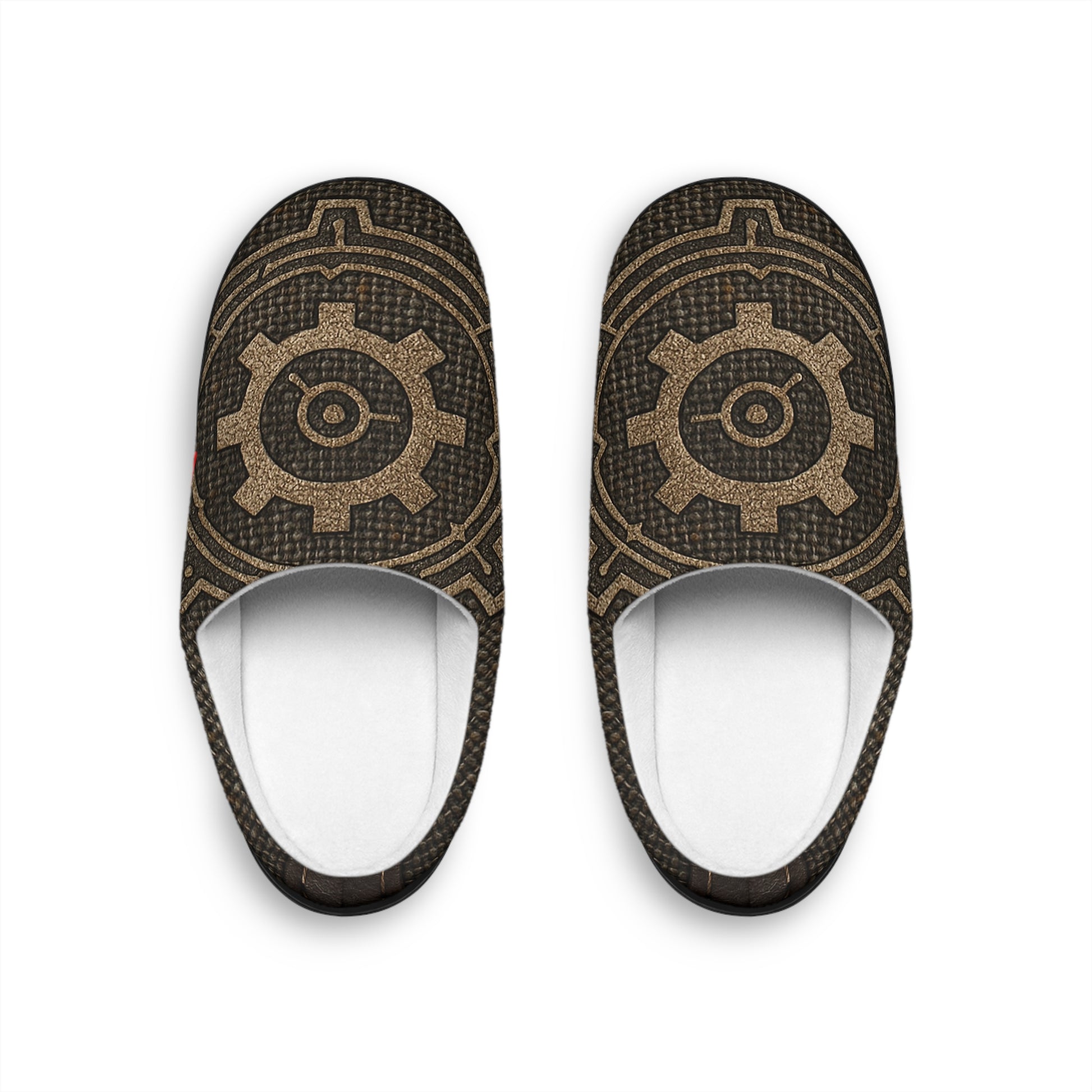 Forged for minds that never fully power down, the Gearbound Slippers honor invention, patience, and precision. The interlocking sigil design recalls ancient schematics and humming mechanisms, where magic and metal are shaped by steady hands and careful thought. These slippers are made for late nights at the workbench, quiet planning by the hearth, and the moments between inspiration and execution.